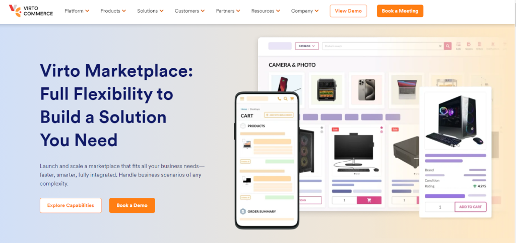 Virto Commerce is a popular example of a composable eCommerce solution that is designed to build multi vendor eCommerce marketplaces. However, the solution primarily supports B2B features and functionality. It allows businesses to launch a customizable and scalable platform. Its headless approach enables businesses to tailor the front-end to their specific needs effortlessly.