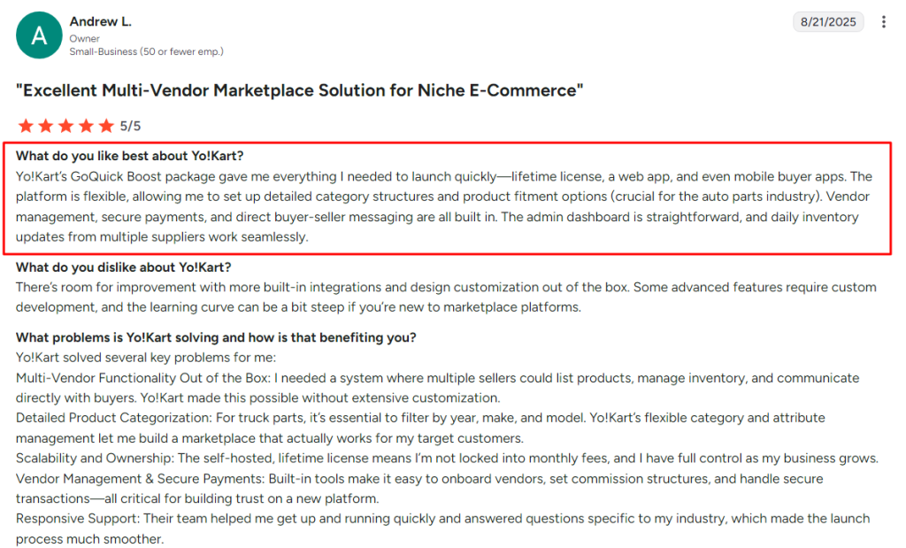 Checking ratings and reviews on the popular platforms can help you get an overview of the real-world performance. Yo!Kart and Shipturtle both are multi-vendor marketplace software. However, to decide which one of these solutions is the best or can deliver a seamless experience, you need to check ratings and reviews by users.