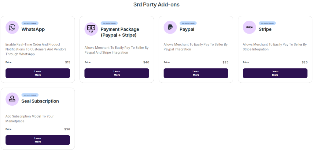 You can’t ignore the importance of third-party tools and APIs when operating a multi-vendor marketplace. They help you enable out-of-the-box features, functionality and services on the platform without the need for custom development.