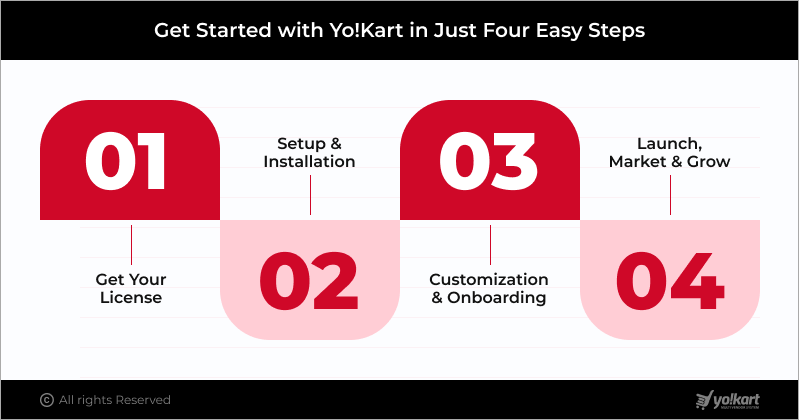 Yo!Kart allows entrepreneurs and startups to build their own multi-vendor marketplace in just four easy steps. It eliminates lengthy processes and helps businesses save both time and money. Let’s learn the steps to get started with Yo!Kart: