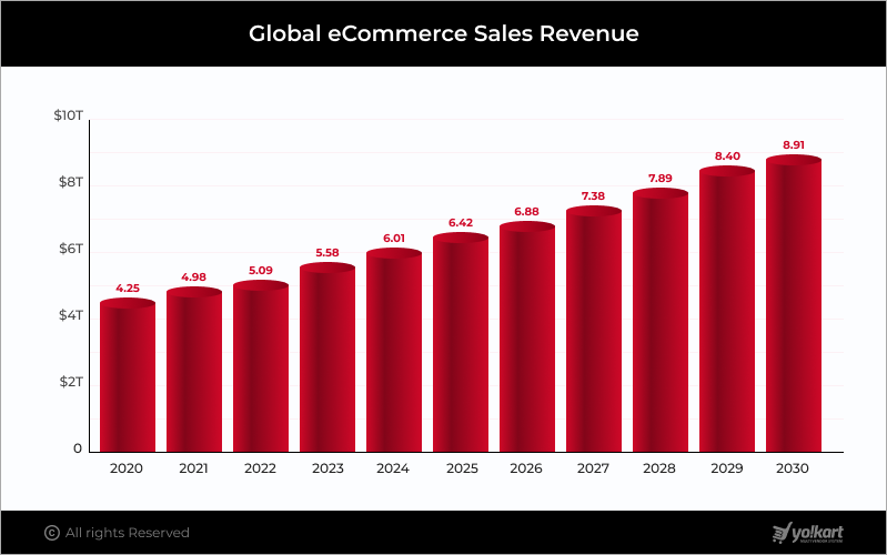 According to eMarketer, the global eCommerce sales are forecasted to reach from $6.42 trillion in 2025 to $8.91 trillion by 2030. The U.S. eCommerce sales are projected to reach $1.17 trillion in 2025. Talking about the number of online shoppers, it will surpass 3 billion by 2025.