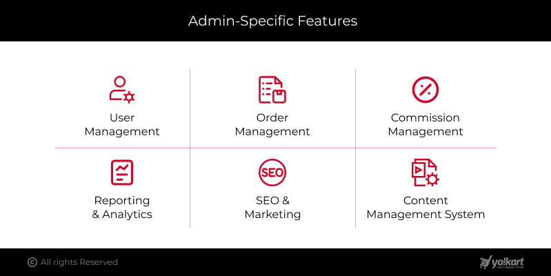 Admin is the marketplace operator that operates, manages and grows the platform. From managing users to ensuring seamless operations, analyzing reports to processing payments, promoting business to acquiring users, implementing emerging technologies to taking care of updates, the admin requires all the necessary features to handle these operations.