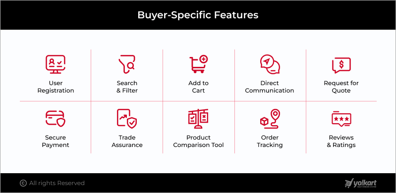 It enables users to navigate complete transactions effortlessly. On Alibaba, two different users primarily participate: buyers and sellers. Let’s explore user-wise key features of Alibaba below: