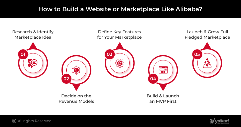 Below are a few time-tested steps suggested by industry experts to help you build a marketplace similar to Alibaba.