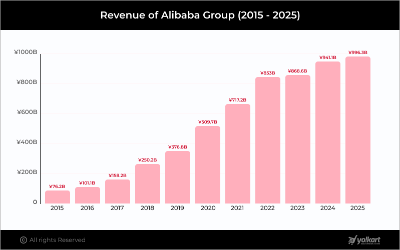 According to Statista, Alibaba Group recorded revenue of approximately $137.3 billion (996.35 billion yuan) in the fiscal year ending March 31, 2025. You can see a continuous growth in Alibaba’s revenue from 2015 to 2025.