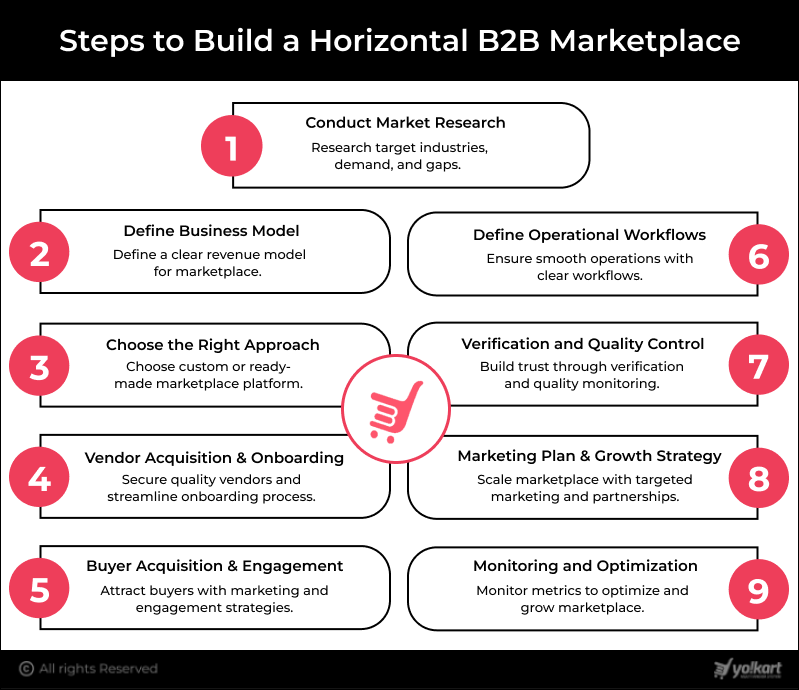 Launching a successful horizontal B2B marketplace requires a careful blend of market research, business strategy, operational planning, and the selection of the right technology platform. Unlike vertical marketplaces that focus on a single industry, horizontal marketplaces span multiple sectors, which adds complexity but also increases growth opportunities. Here’s a detailed, step-by-step approach to building one:
