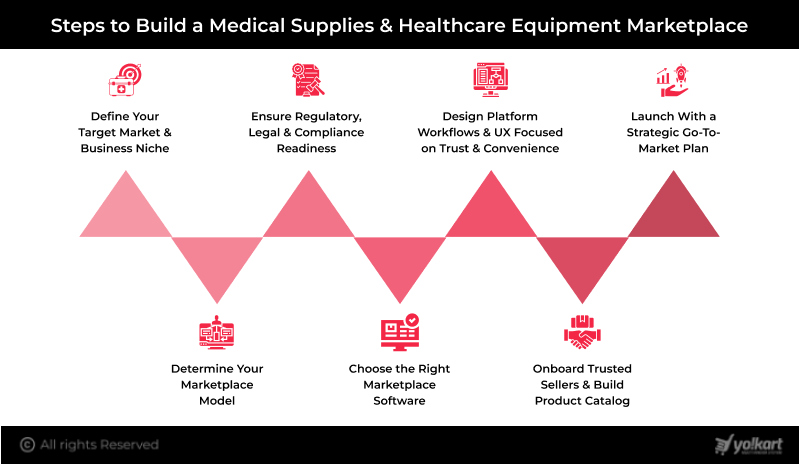 Launching a medical supplies & healthcare equipment marketplace requires a strategic blend of business planning, regulatory compliance, technology selection, and supplier onboarding. Here’s a refined step-by-step roadmap: