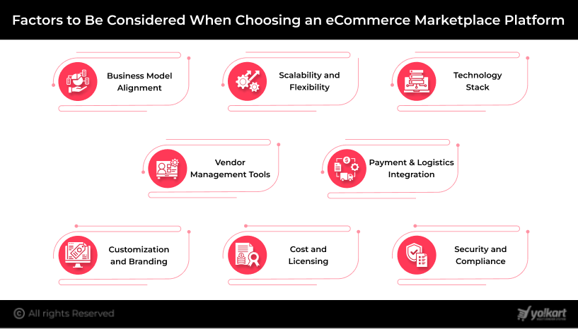 Selecting the right eCommerce marketplace platform requires a thoughtful evaluation of several critical factors. Each element contributes to building a scalable, efficient, and user-friendly marketplace that supports both vendors and buyers. A well-chosen platform supports long-term growth, reduces operational friction, and aligns with your overall business strategy. Here are the critical factors to consider: