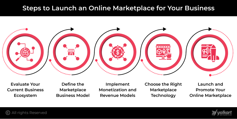 Below are the key steps businesses can follow to successfully launch their own online marketplace: