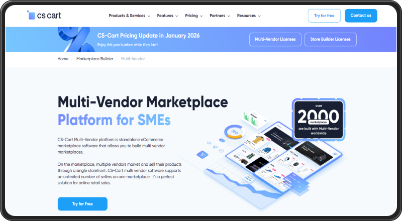 CS-Cart Multi-Vendor is a feature-rich eCommerce marketplace platform that allows businesses to launch and operate multi-vendor marketplaces. It offers features like vendor dashboards, flexible commission structures, multi-store capabilities, and powerful admin controls. Additionally, the platform offers customization and supports global expansion with built-in multilingual, multi-currency, and tax management features.