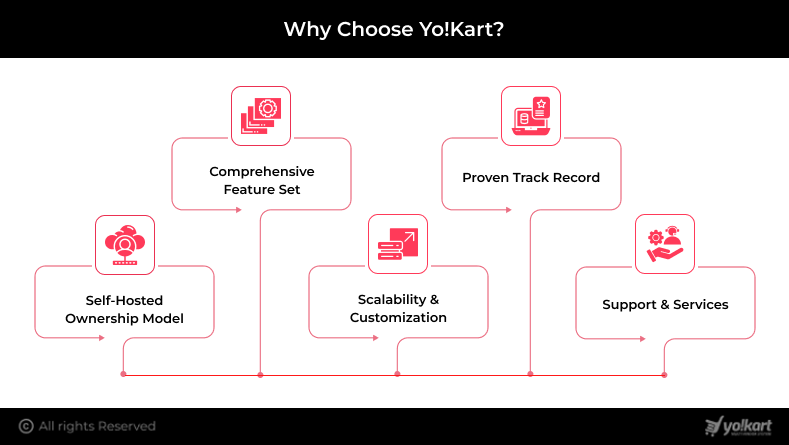 Among the top eCommerce marketplace software platforms in 2026, Yo!Kart stands out for several compelling reasons. Let’s have a look at them: