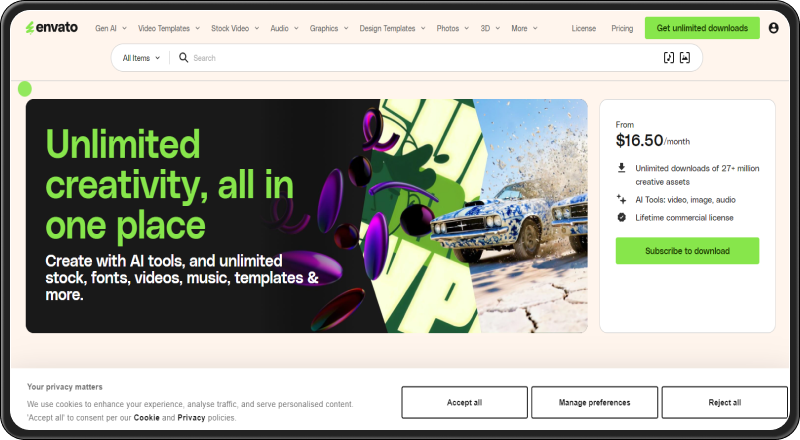 The marketplace offers a wide range of digital products, including website themes and templates, stock images and graphics, video templates, music tracks and sound effects, software scripts and plugins.