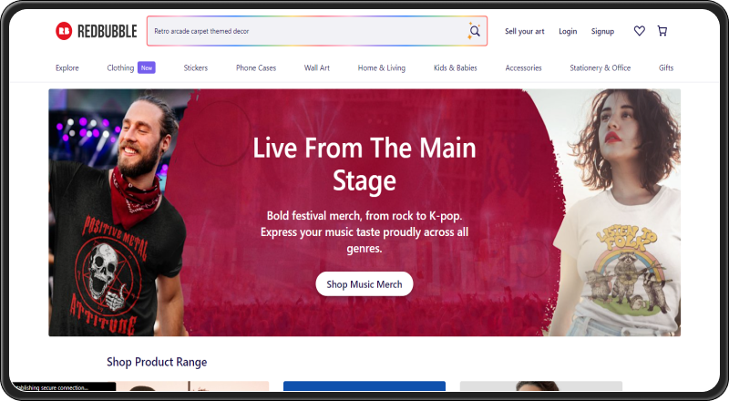 Redbubble is an Australian print-on-demand marketplace that allows artists to sell custom designs on products such as clothing, posters, and accessories. The platform has built a strong global community of creators who use Redbubble to monetize their designs.