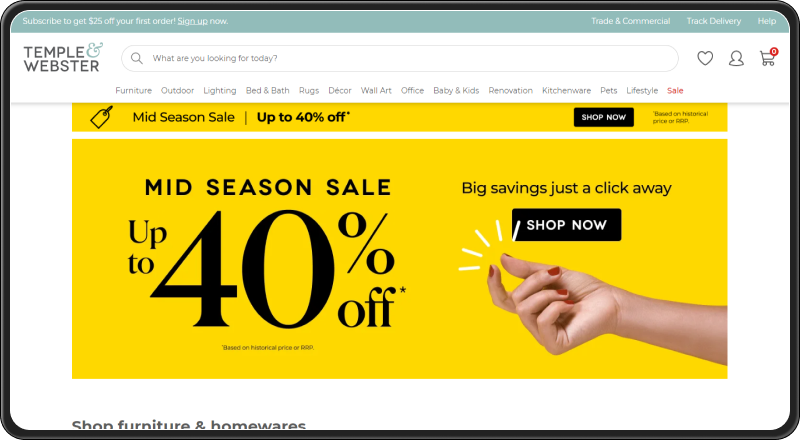 Temple & Webster is one of Australia’s leading online marketplaces specializing in furniture, home decor, and lifestyle products. Founded in 2011, the platform has grown rapidly and now partners with hundreds of suppliers and brands offering a wide range of home-related products.