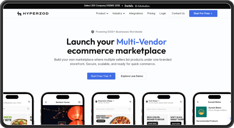 Hyperzod is an AI-first, cloud-based white-label SaaS platform designed to help businesses launch and manage single-vendor or multi-vendor eCommerce marketplaces with integrated ordering, delivery, and growth features. It supports quick commerce models, including food, grocery, pharmacy, and general product delivery, with automation and routing tools built in.